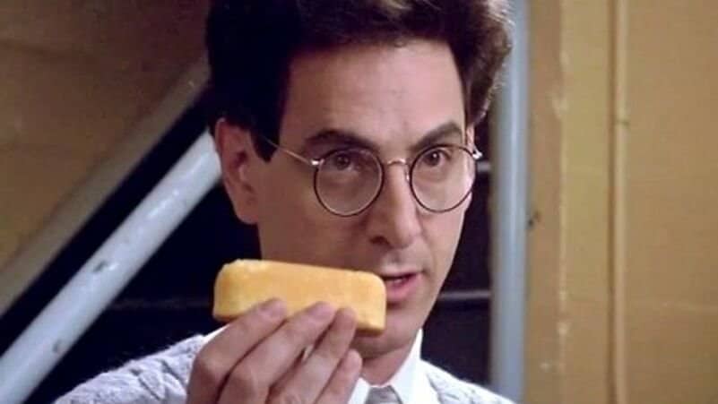 Um detalhe que sempre me faz rir, aquelas coisas típicas de criança, como uma pequena cena protagonizada por Ramis no filme fez com que eu levasse minha mãe a se aventurar em vários supermercados do bairro. O momento em que seu personagem, Egon Spengler, utiliza um bolinho Twinkie (não sabia o nome na época) para explicar sua teoria sobre energia psicocinética. Eu sentia uma fome absurda naquela cena de alguns segundos, minha boca salivava. Só descansei quando minha mãe chegou um dia em casa com alguns bolinhos “Ana Maria”, que devorei após imitar várias vezes aquela cena, já que havia memorizado a fala dublada.