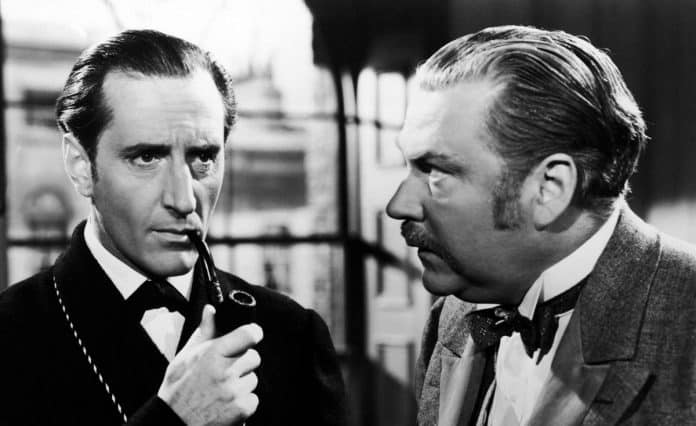 As primeiras nos estúdios 20th Century Fox, os excelentes “O Cão dos Baskervilles” (The Hound of the Baskervilles – 1939) e “As Aventuras de Sherlock Holmes” (The Adventures of Sherlock Holmes – 1939, em que o protagonista fala o clássico: “Elementar, meu caro Watson”), foram pioneiras ao retratar o personagem no período Vitoriano (somente nos dois primeiros filmes), sendo coerentes aos livros.
