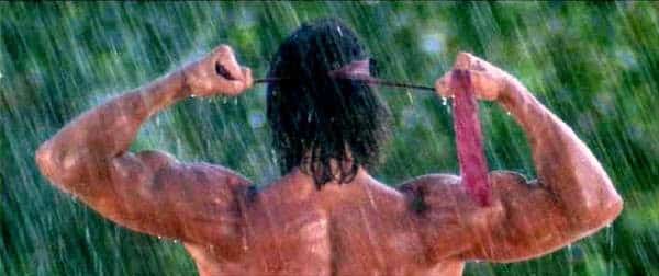 Todo o interlúdio romântico com a bela Julia Nickson, com direito ao triste monólogo sobre ser alguém dispensável (antecipando o título da franquia “The Expendables”) e a declaração de amor do herói ao seu facão, pode ser terrivelmente expositivo e clichê, mas funcionava tremendamente bem para minha contraparte infantil.