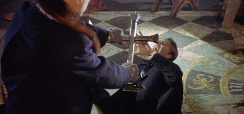 Ainda que as presas do vampiro, símbolo máximo do personagem, tenham aparecido pela primeira vez em um obscuro filme turco da década de 50, foi com Christopher Lee que se imortalizou a imagem, potencializada pelo vermelho berrante do Technicolor no sangue que pingava das presas. Hoje em dia é difícil mensurar o choque que o elemento da cor causou no gênero, mas era algo que deixava os censores desorientados. Essa novidade que era vendida já no trailer, levava muitos a pensarem que não passava de uma irresponsável glamourização da violência, um deleite culposo para os olhos. O público estava acostumado a ser poupado nos momentos mais grotescos. O desfecho de um duelo de espadas em preto e branco poderia muito bem ser conduzido para as sombras dos corpos na parede, minimizando o efeito visual da espada que atravessa o corpo do vilão. Em “O Vampiro da Noite”, a câmera se aproxima para captar o gorgolejar do sangue que explode do corpo, após a estaca ser enfiada no peito da vítima.