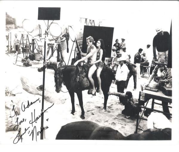| Filmagens em Zuma Beach, CA. Fotografia autografada por Linda Harrison em 1998. |