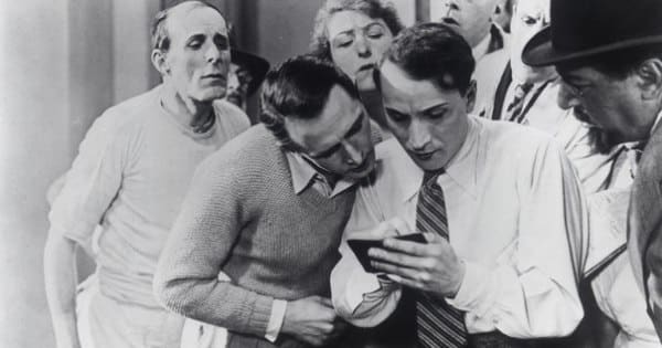 Na sequência inicial vemos uma festa barulhenta que faz com que dois vizinhos adentrem tentando entender a razão de tanta alegria, o roteiro nos conduz então em um flashback, mas sem interesse em despertar dúvidas a respeito do destino do protagonista. Não há reviravolta chapliniana, o herói acabará nos braços da bela jovem, o bilhete será encontrado. Esse positivismo, sem traço algum de cinismo, faz falta nas comédias modernas.