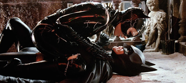 Batman não é divertido, ele é o órfão que abdica de sua vida adulta para cumprir sua missão. Ele termina o filme como uma figura deprimente, elemento captado com perfeição na melancólica trilha sonora de Danny Elfman, retornando com Alfred para a solidão de sua mansão, após levar lição de moral dos vilões, buscando consolo no gato de rua que resgata do frio noturno. Todas as crianças sentadas na sala escura querendo vibrar com a aventura prometida pelas peças de merchandising, mas o roteiro toma mais tempo desenvolvendo psicologicamente os vilões. Não há atitude artisticamente mais corajosa que desafiar seu público.