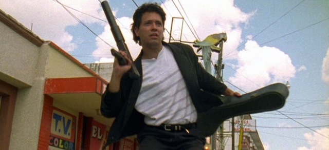 Eu lembro da gargalhada que soltei na cena do bar, quando o mariachi (Carlos Gallardo) se oferece para cantar no estabelecimento, mas o dono despreza sua arte apontando para um pobre coitado sentado na frente de um teclado vagabundo, dizendo: “Por que eu iria querer um mariachi, se tenho uma banda completa?”