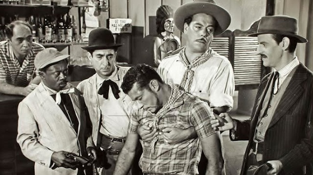 Neste clima hostil, chegam à cidade dois camelôs, vividos por Ankito e Grande Otelo. Um deles, sósia de um temido pistoleiro, assume o papel do justiceiro, apesar de ser medroso contumaz e avesso à sons altos. Eles fazem amizade com um grupo teatral mambembe liderado pela encantadora vedete vivida por Renata Fronzi, que logo desperta ciúmes na hilária cangaceira Pequenina (Anabela), namorada do verdadeiro pistoleiro, que ilumina a tela com sua presença. Tente não rir com o método dela para espantar pessoas desconhecidas de seu quarto. A sequência é um dos pontos altos da chanchada nacional.
