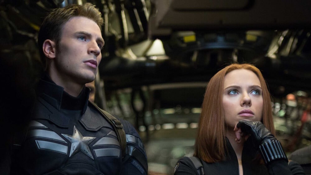 Uma cena que define um dos grandes problemas do filme e deste formato adotado pela Marvel: o protagonista acaba de enterrar a mulher que mais amou na vida, ainda que ao analisar a tristeza no rosto de Chris Evans, exercitando a sua única variação de expressão, pareça a tristeza de um menino que viu quebrar seu videogame. Na missa, o seu colega percebe a presença da sobrinha jovem e bonita da falecida, o que o faz divertidamente chamar a atenção do viúvo, como o moleque travesso da escola que diz: que gatinha, olha lá. O roteiro não permite que nenhuma cena dramática finalize sem uma desconstrução bem-humorada. Até mesmo o aguardado embate entre os heróis divididos por ideologias, conceito que funciona apenas nos quadrinhos.